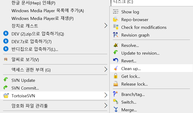 SVN-error: previous operation has not finished; run 'cleanup' if it was interrupted 해결